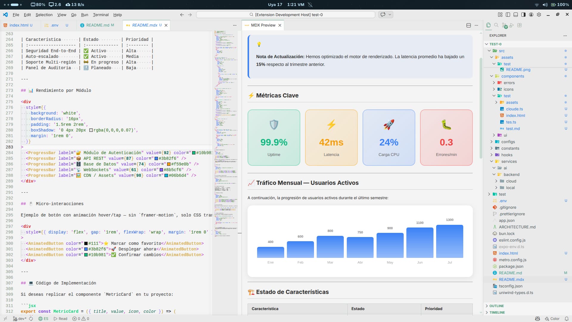 Markdown MDX | Full MDX syntax support and live preview using React/esbuild compilation. Quick access via Shift + Alt + M. |